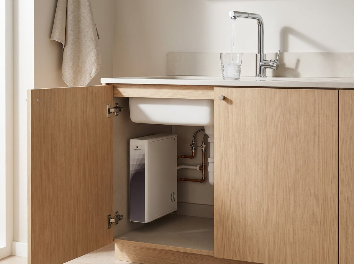 Sistema ad osmosi inversa compatto, progettato per essere installato anche dove lo spazio è minimo. Una soluzione discreta che si integra facilmente negli ambienti più compatti.